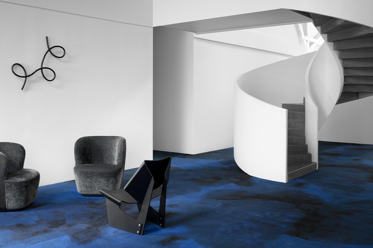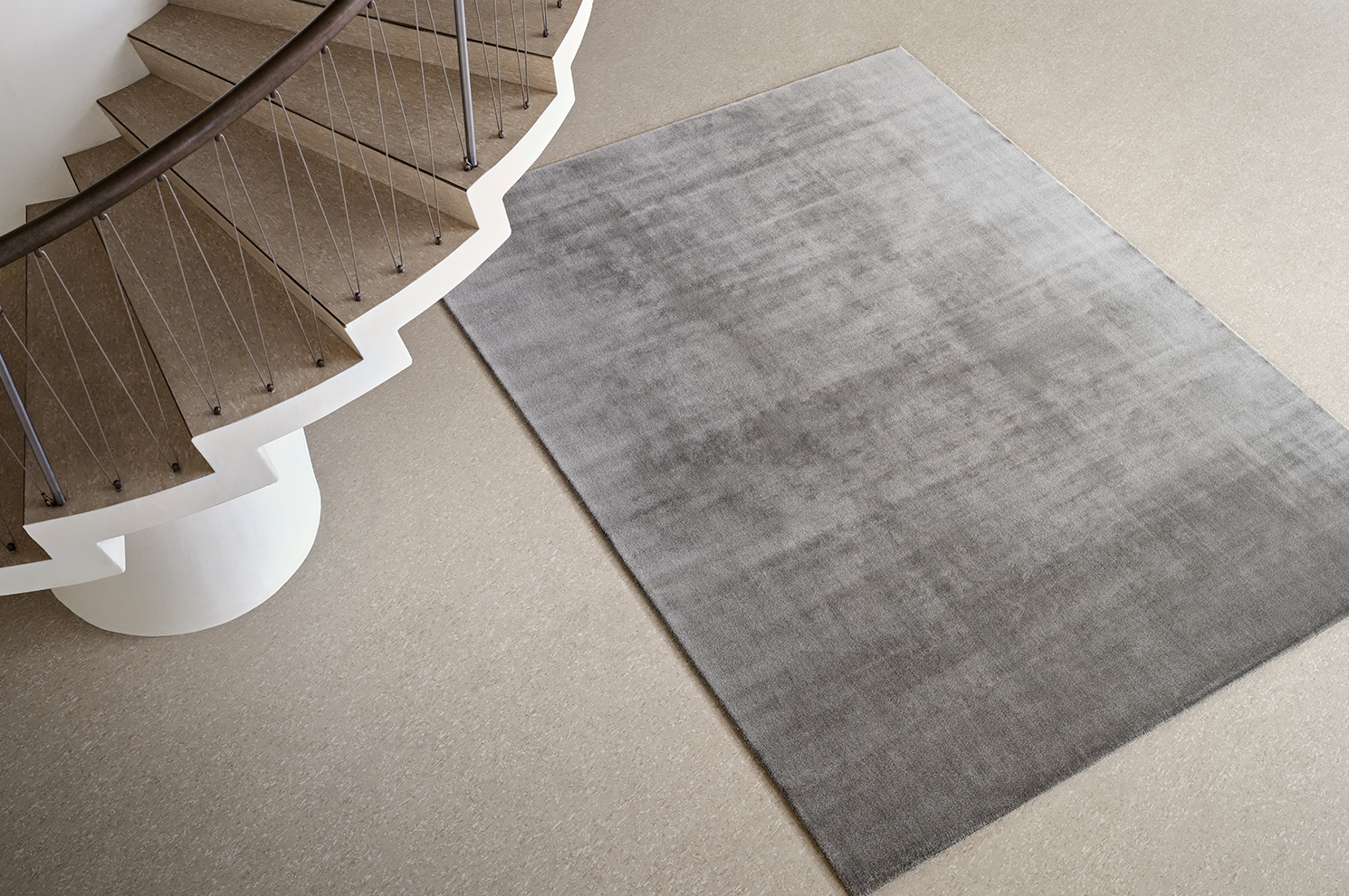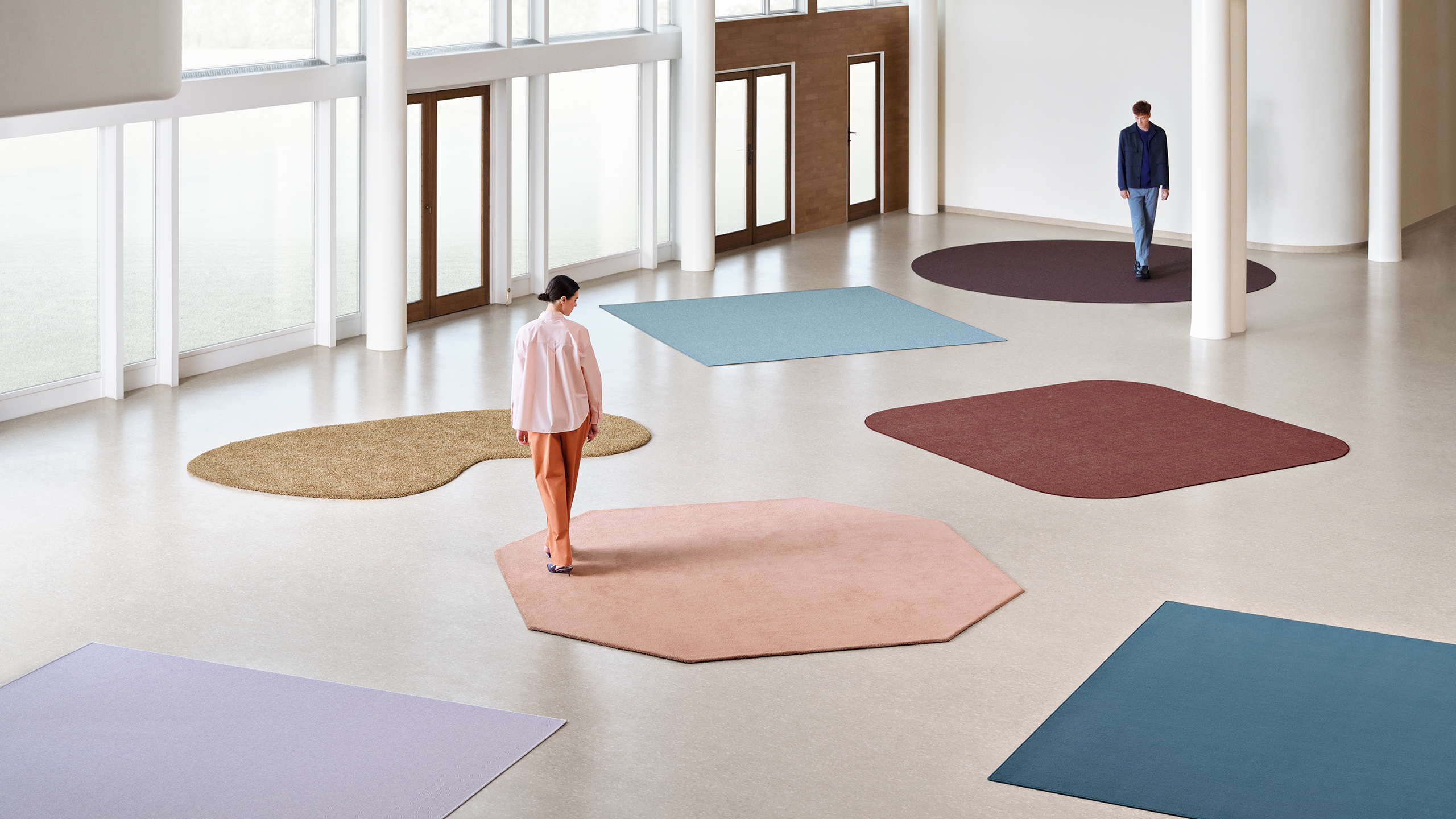 A single rug can transform a commercial space, softening minimalist architecture, anchoring furniture, and creating calm through colour, shape, and unity.
